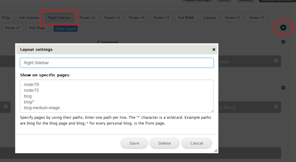 Each layout have name and Show on Pages field, there you can enter any URLs there is this layout will be used.