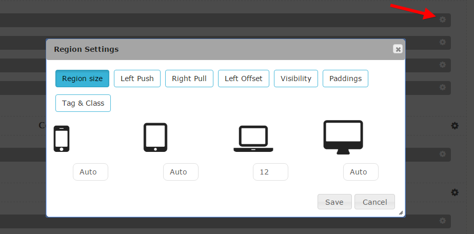 Region supports responsibility, and there is all list of options to configure how many columns it will take on any device, and if it will be showed/hidden.