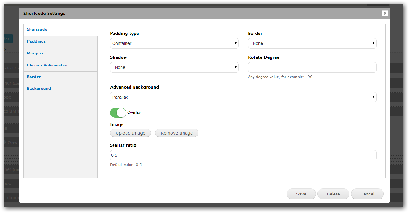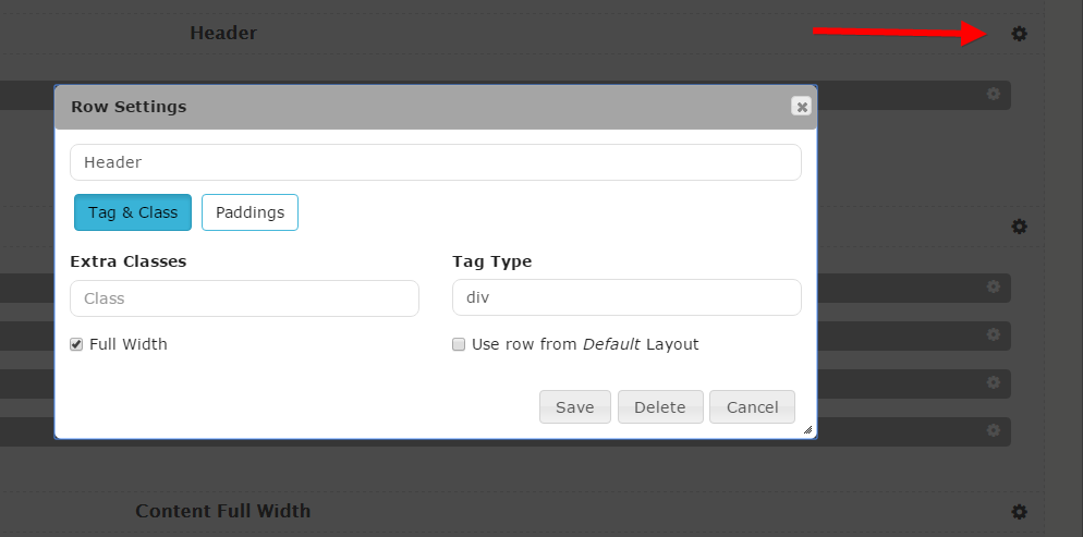 You can assign extra classes for styling, setup Paddings, change Tag type or disable it, and set this row as Full Width.